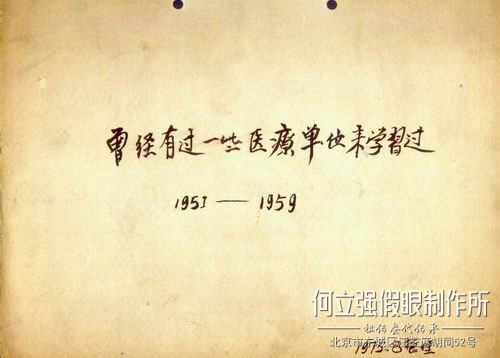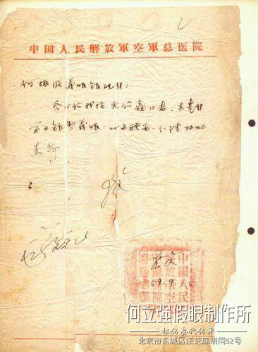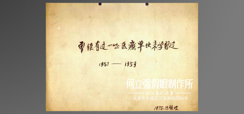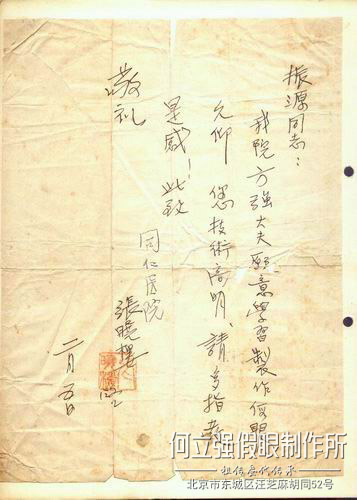 现在自何振源老先生、之子何立强、之孙何飞在北京市东城区汪芝麻胡同52号制作独特假眼至今祖传历经三代了。